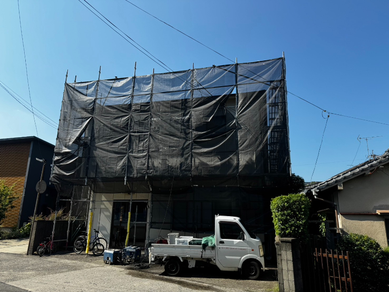外壁塗装工事を着工しました。